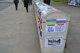 Здесь, неподалёку, не очень активно демонстрировали свою ненависть к России и к Путину засланцы новой "демократической" Украины. Судя по отсутствию зрителей, интерес у лондонцев к их разоблачениям "империи зла" весьма слабый. Компанию демонстрирующимся составляли лишь флаги особо солидарных с ними стран.