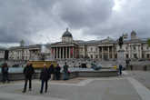 А вот и самая заглавная площадь города — Трафальгарская. Компанию двум генералам и монарху здесь составляет голубой петух (о нём я уже упоминал в предыдущей заметке), а адмиралу Нельсону остаётся только укоризненно взирать на это безобразие с высоты его исторического пьедестала.