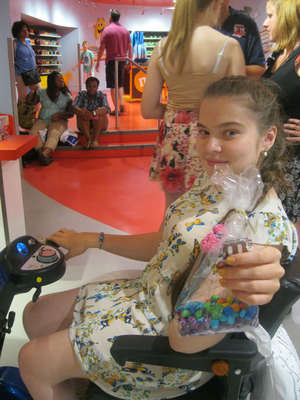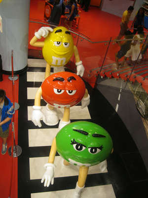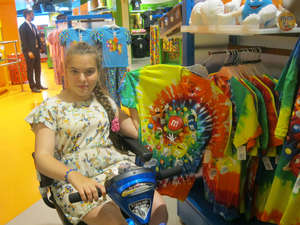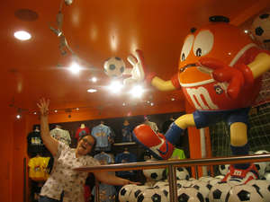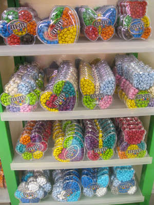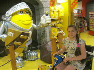 Мы посетили магазин " M&M's " в Лондоне. Ну почему у нас подобных магазинов нет? Если честно, то его магазином как то даже трудно назвать, по факту это музей " M&M's " , в котором все экспонаты можно купить))) Здесь интересно не только детям, но и взрослым, вход бесплатный, но если тебе что нибудь приглянулось, то не стесняйся покупай! Чего здесь только нет, огромные стенды с конфетами, можно купить в какой нибудь красивой упаковке, а можно просто на вес набрать какого цвета тебе понравится из больших труб. Именно таких конфет мы купили не много, не удобно уходить совсем без покупки, тем более что нам здесь очень понравилось))) Приветливая продавщица угостила нас конфетами бесплатно! Кроме конфет море всякой фирменной одежды и игрушек, кружки, горшочки, мячи и т.д. Кругом стоят большие разноцветные M&M'sы, играет музыка, гуляют люди у которых отличное радужное настроение, как и у конфет. Даже лифт раскрашен под Лондонскую телефонную будку и заходишь как буд то не в магазин. а Лондонский автобус. В общем не магазин. а праздник какой то!