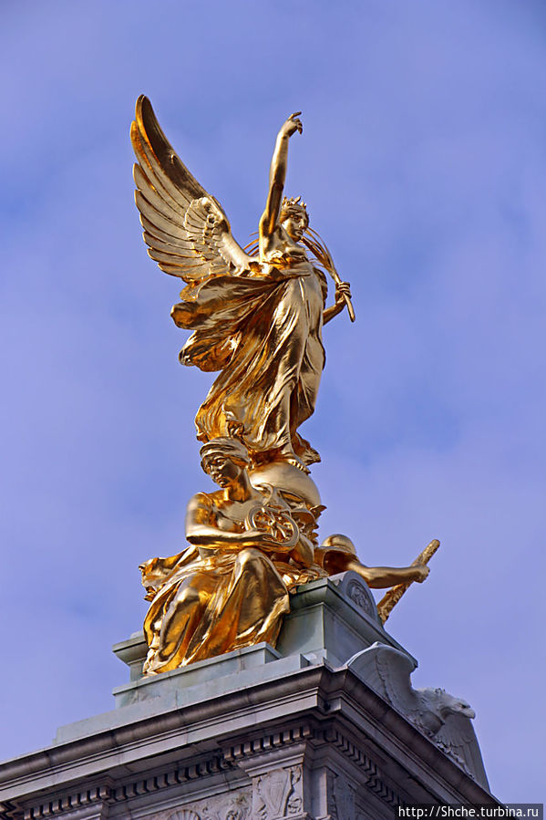 Облом у Букингемского дворца, или по улице коней водили Важно то, что смены караула в этот день не было, за то было не много народу, и нам удалось во всех деталях рассмотреть, не побоюсь этого слова, шедевр, находядищийся на площади перед дворцом — Мемориал Виктории (англ. Victoria Memorial).