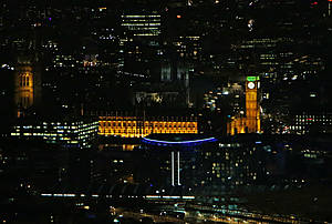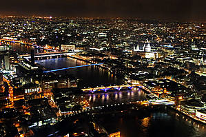 А погода не подвела. Видимость была прекрасная. А вот само освещение Лондона слегка разочаровало. Конечно, мы быстро нашли легкоузнаваемые очертания Тауэрского моста, Тауэра, Собора св. Павла, Дворца Парламента с его спутником Биг Беном... А вот остальное освещение оставило пожелание лучшего. Реально освещены только проезжая часть улиц, густою паутиной накрывшая все пространство. И еще очень живописно выглядела Темза с ее подсвеченными мостами...