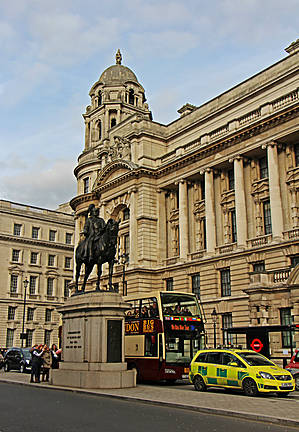 А вот Уайтхолл как-то не на слуху. А между тем место-то, центральнее не бывает. Как раз соединяет две суперпосещаемые лондонские площади — Трафальгарскую и площадь Парламента. Да и учерждения на ней сплошь серьезные: Дворец Уайтхолл, Дворец кабинета Министров... Королевская конная гвардия тут же обитает, да и знаменитый Даунинг-стрит, где обитает премьер-министр Великобритании, начинается отсюда.