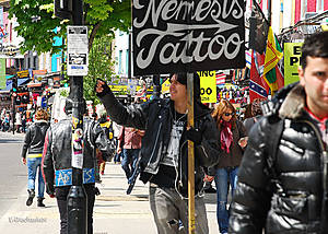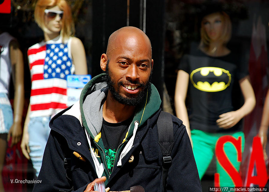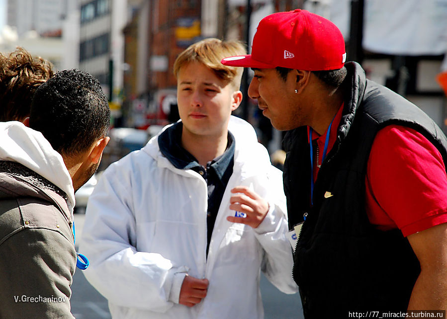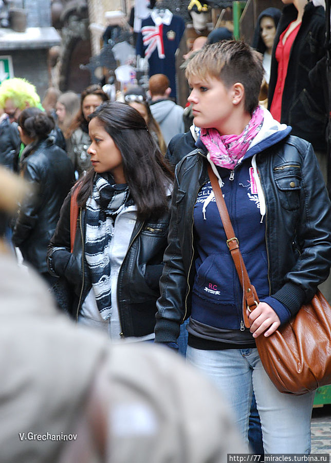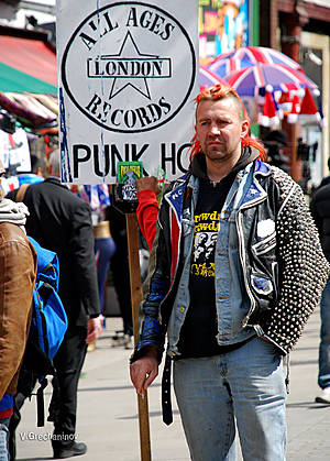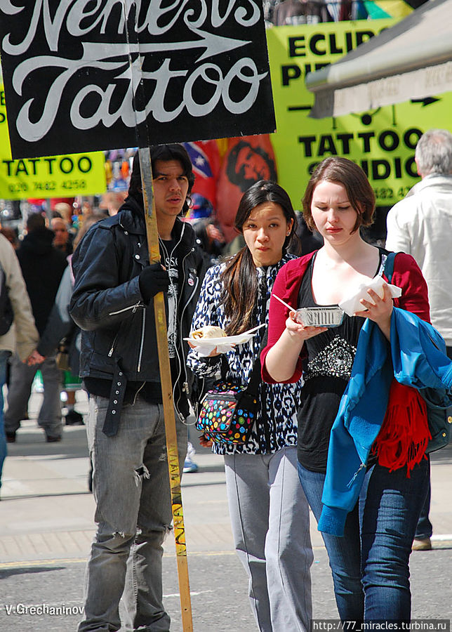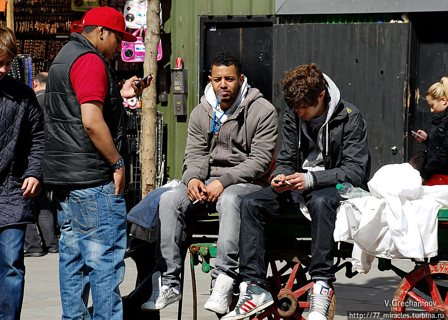 Туристы, попавшие сюда впервые, напоминают робких африканских путешественников времен фильма "Снега Килиманджаро", которых строго предупредили, что изучать нравы обитателей местной саванны следует не вылезая из лэндровера. Для безопасности. Я тоже слышал немало рассказов про агрессивность здешней публики, но сам как-то не сталкивался и верю с трудом. Какая там агрессия, так, показуха. Наоборот, впечатление такое, что здешняя шипованная публика, которая с понтами толчется у метро, подрабатывает неформальными подростками на гранты министерства туризма. Несколько лет назад они хоть от камеры шарахались, а теперь — снимай на здоровье, особенно, если не в упор, а на длинном фокусе. Но это у них национальное, жители Альбиона сниматься вообще не любят, характер такой. А зря, на фотографиях у них получаются хорошие доброжелательные лица, без нашей вечной злобы и обиды.