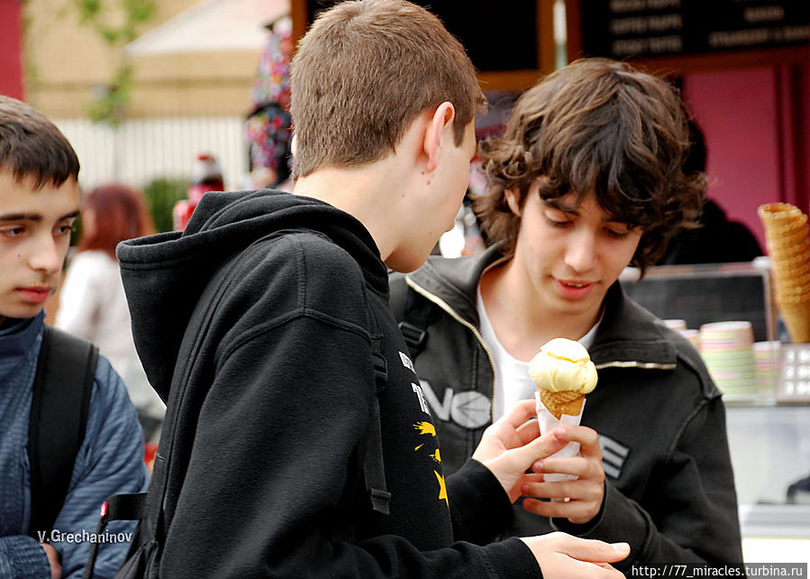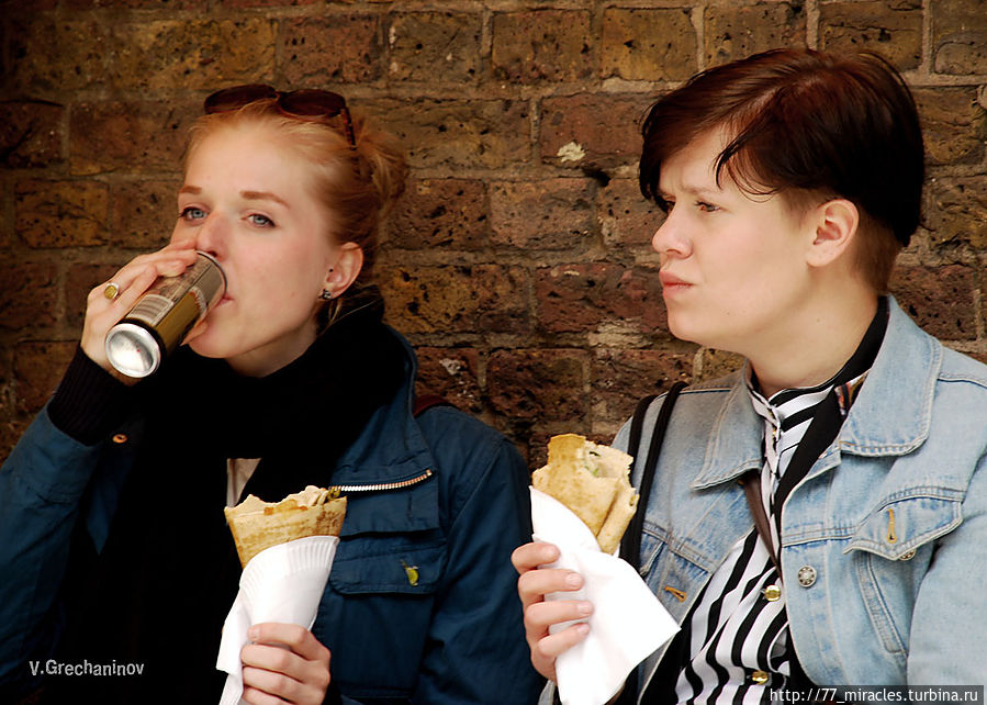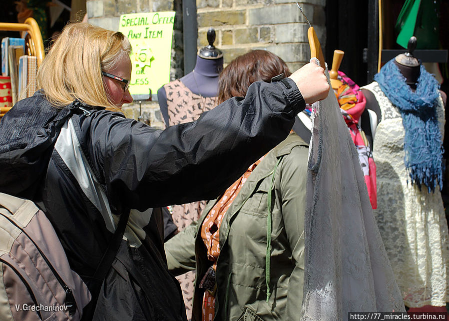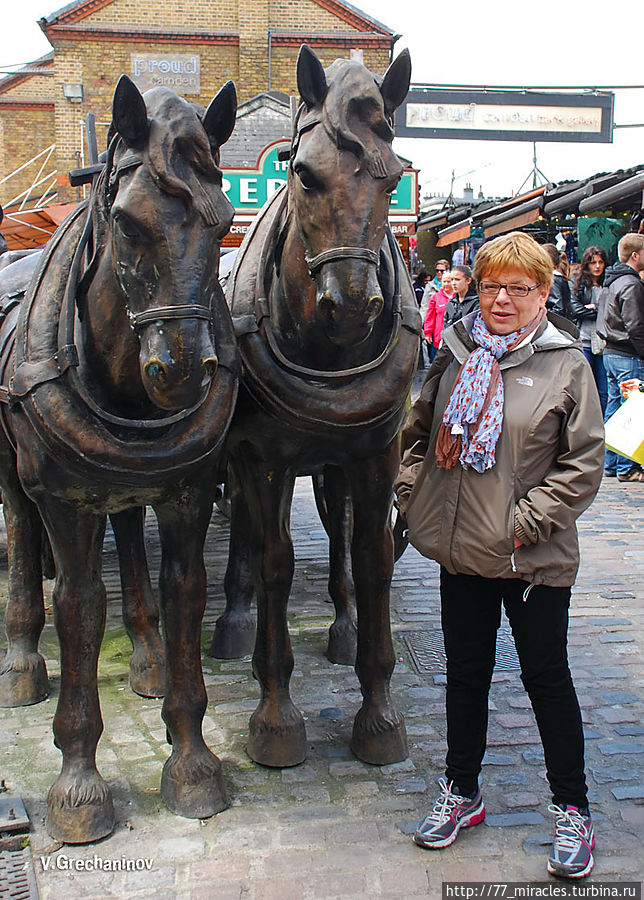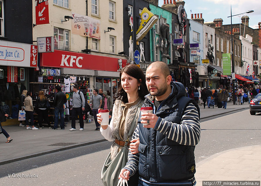 Впрочем, и большим рынком тут не удивишь тоже, потому что весь город — это огромный шопинг, особенно в сезоны летних и зимних распродаж. И все же Кэмден — это не торговый Ковент-Гарден, не Оксфорд-стрит и даже не Брент-крос, куда обожают ездить наши соотечественники за дешевыми рубашками от Ральфа Лорена. Потому что и в огромный Camden Lock Market — рынок, переделанный из лесопилки, и в переделанный из конюшни Camden Stables Market туристы ходят не за покупками, а за неповторимыми впечатлениями. Хотя здешние прилавки как и положено забитым джинсами, кожаными куртками, индийской бижутерией и всякой якобы дизайнерской чепухой, а фрукты тут дешевле чем даже в магазинах Tecko.