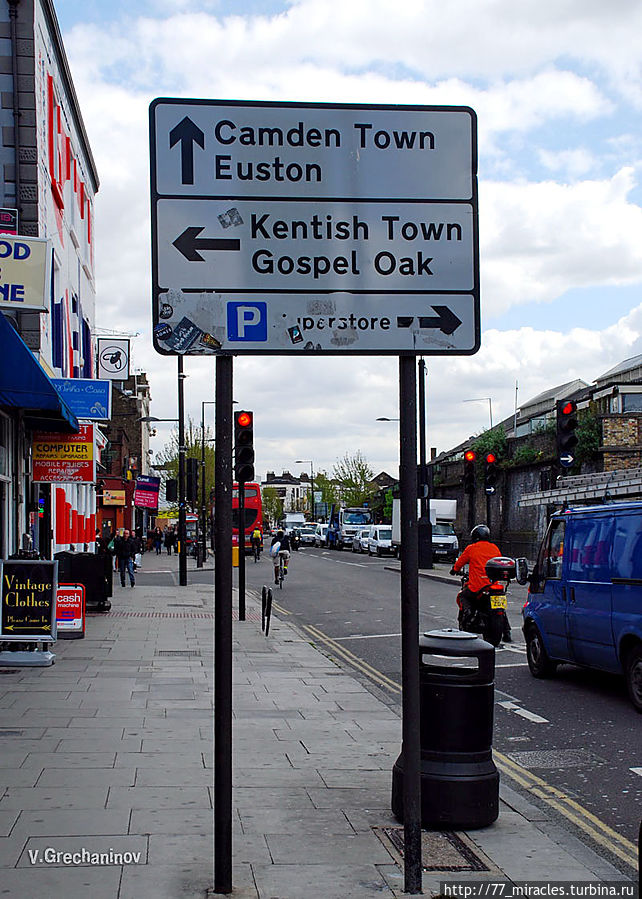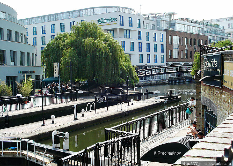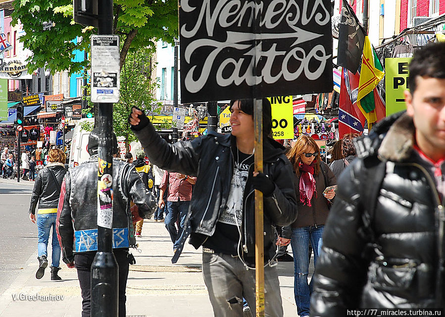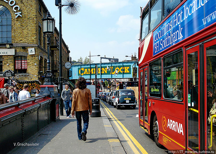 Наверное, одно из самых любопытных мест Лондона — это Кэмден, он же Кэмден-таун. Туда можно попасть на метро по черной северной ветке, а еще лучше спуститься пешком из Хэмпстеда по Хэмпстред-Хай-Стрит, которая, неуклонно теряя респектабельность, постепенно превращается уже в Кэмден-Хай-Стрит. При этом уютные викторианские особняки Хэмпстеда и Белсайз-парка сменяет недвижимость попроще, а когда за станцией Чок-фарм почти на каждом домишке можно увидеть табличку "Сдается" — значит, все, пришли. Потому что Кэмден — это рынок и не один, а кому охота жить рядом с торговой точкой. Хотя место довольно симпатичное — живописнейший канал, неподалеку Риджентс-парк, за ним знаменитая Эбби-Роуд и другие исторические места, которыми, впрочем, в Лондоне никого не удивишь, которому что буквально каждый камень тут обязательно дышит какой-нибудь исторической личностью или событием.