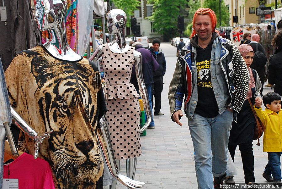 Потому что Кэмден — это не магазин, это огромный человеческий заповедник молодежной фауны последних десятилетий — хиппи, панков, готов, эм и всех других направлений, которые только существовали на Земле. Выходишь из метро и сразу оказываешься в каменный джунглях, заселенных экзотическими созданиями из кожи и металла, с кольцами в носу и с фиолетовыми волосами. Все стили и направления на одной площадке. Сказка!