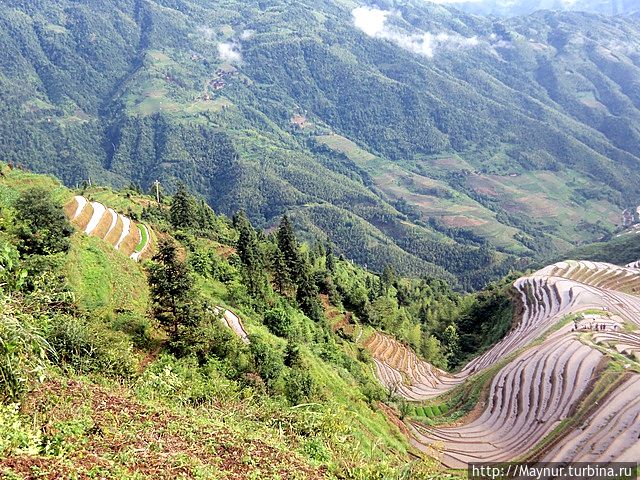 Не знаю, есть ли на земле еще подобное чудо, этими же террасами можно любоваться бесконечно. Удивляет точная выверенность их расположения по горизонтали, ведь малейшая ошибка может привезти к обрушению стенок и , как следствие, гибели урожая, Труд титанический — только китайцы с их невероятным трудолюбием могли создать нечто подобное.
