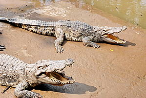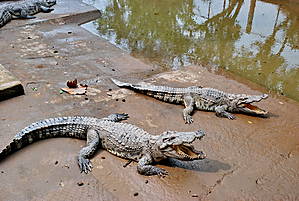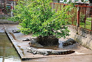 На одном из островов мне довелось увидеть ферму по разведению крокодилов. Лежали они себе на солнышке и почти не двигались. Только пасть иногда открывали. Заодно выяснила — почему.