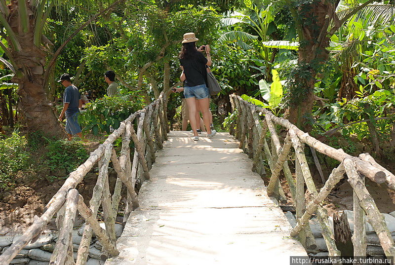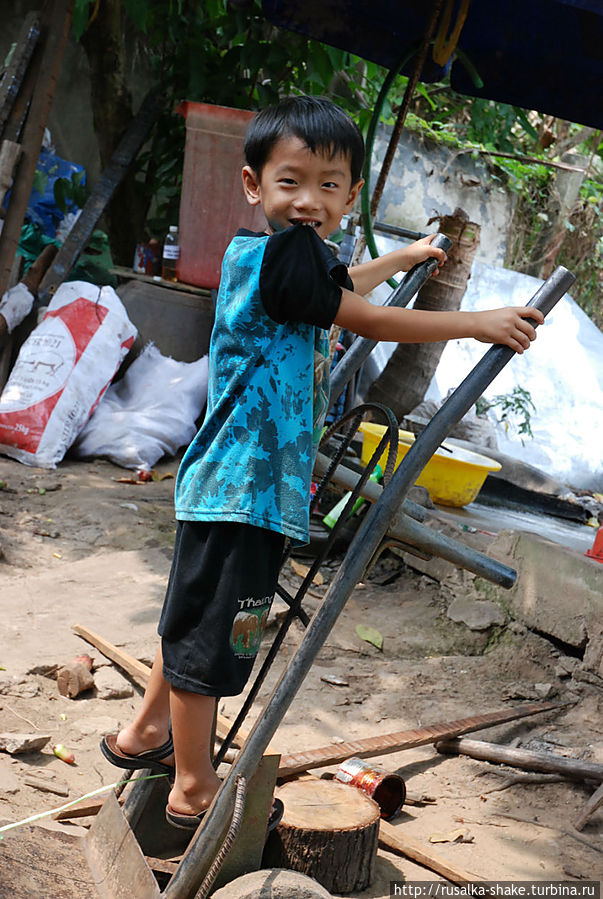 Разумеется, здесь все заточено под туристов — мастерятся поделки из кокоса, пекутся рисовые блины, делаются конфеты и пр.
