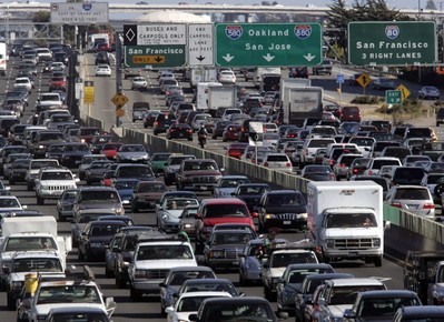 Здесь не будет перекрёстков, светофоров.Однако и здесь не всё так гладко. Перед поездкой я предполагал, что американские фривэи — это трассы без пробок, однако действительность опустила меня на землю. Пробки, особенно в часы пик, — здесь привычное дело. Впрочем, с тотальной пробкой без видимой причины я столкнулся лишь раз под Сан-Франциско, когда пришлось стоять, не двигаясь, минут 20-25. Чаще же попадаешь в "полупробку", когда приходится двигаться за городом на скоростной трассе в режиме 20-60 км. в час.