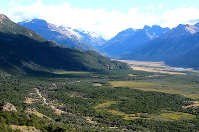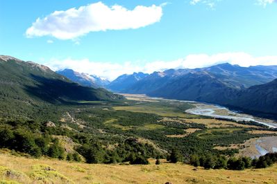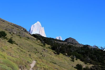 К лагуне Торре, острым пикам и ледникам. Ну а ещё полдня перед отъездом оставались на выдвижение к главной смотровой площадке Фитц-Рой, проснувшейся на этот раз совсем в безоблачном настроении.Заветная тропа начинается сразу за северной окраиной городка, у единственной дороги, ведущей вдоль реки к чилийской границе.