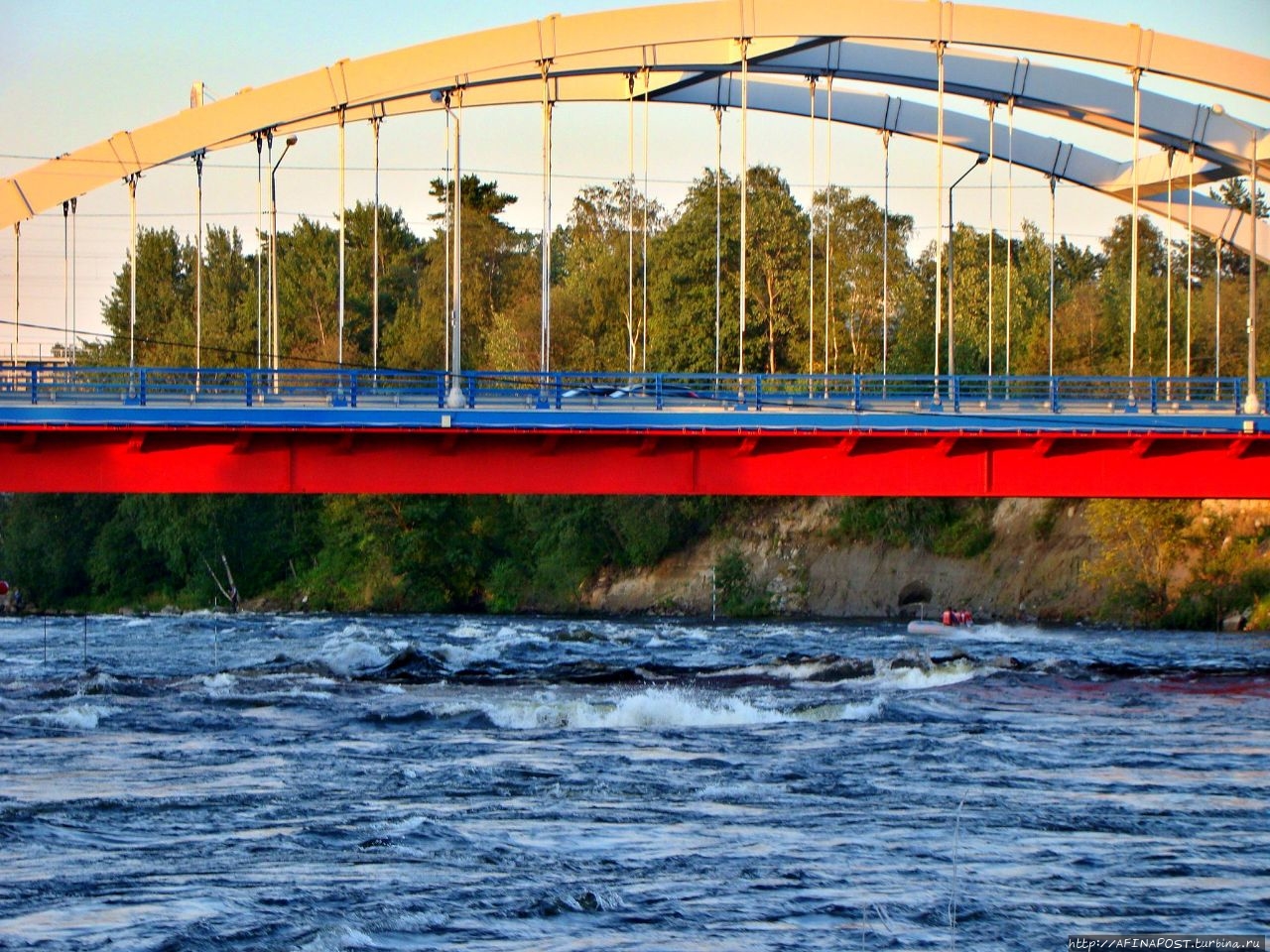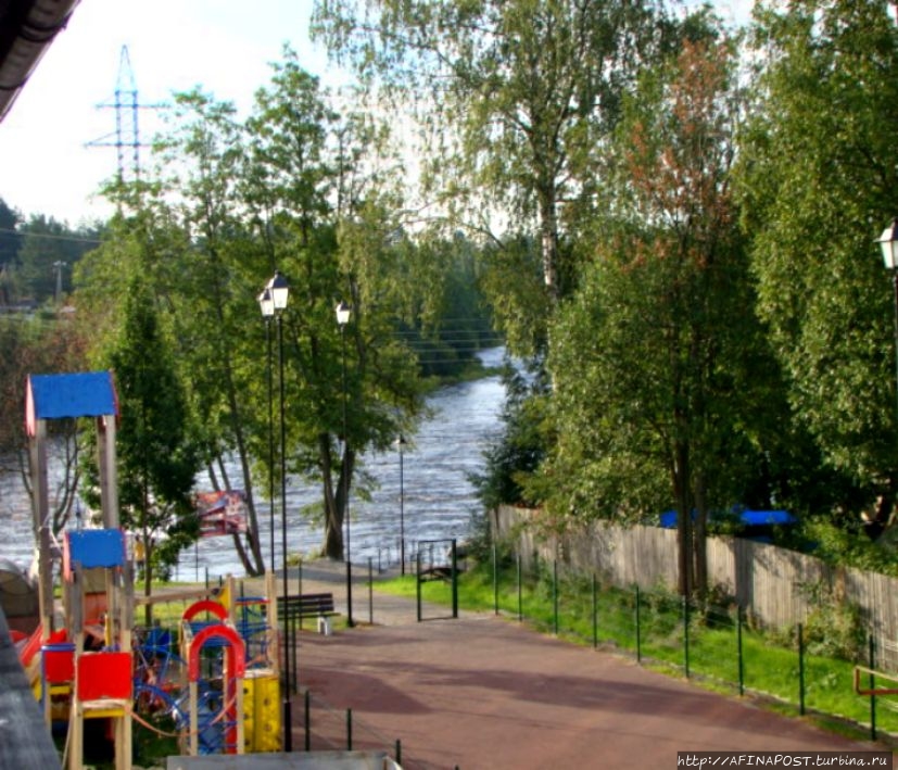 С первого взгляда, с дороги, проезжая по красивому мосту через реку Вуоксу, мы поразились её бурлящими водами, поднимающими сотни брызг на порогах. База отдыха находится сразу за поворотом налево с моста.