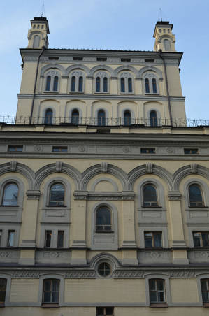 Над главным входом в театр сперва установили официальный герб Киева с изображением архистратига Михаила — покровителя города, но против этого категорически выступил митрополит Феогност — над таким грешным заведением и вдруг святой небесный воин. Поэтому герб заменили композицией грифонов, которые держат в лапах лиру, как символ музыкального искусства.