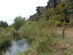 Еду в сторону Луганска, но на полдороги ухожу налево — я так люблю. Здесь, через километров так 8-10 есть село Красное с монастырем, где я придумал зайти, посмотреть и даже победить. Километра 4 прошел пешком, потом остановил какую-то телегу и доехал почти до монастыря. В монастыре меня ждал облом. Ощущение было такое, будто я к кержакам зашел: харчевать не пригласили, о здравье не проведали. Хорошо хоть на.. не послали. Воды только налили и я в куширя ушел валяться с палаткой.