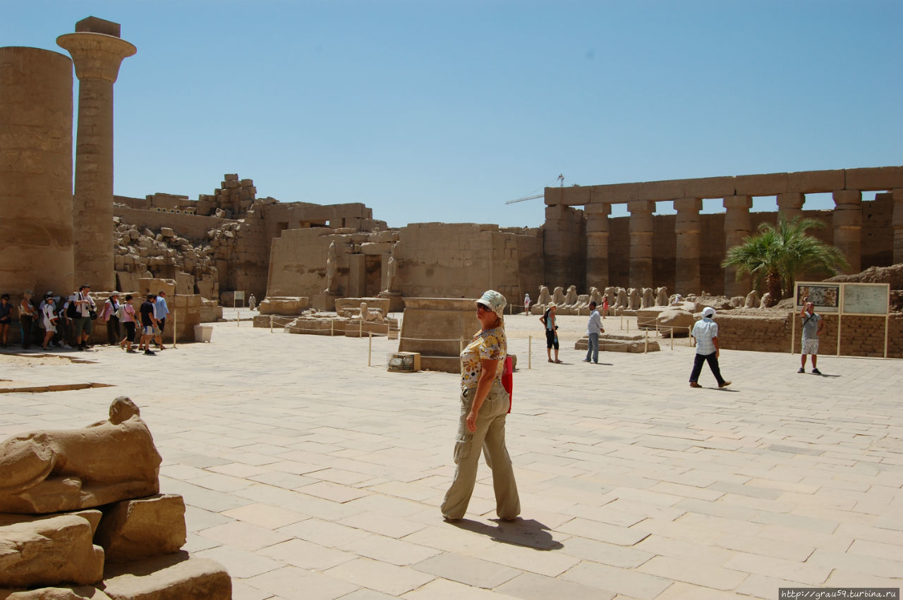 Несчастливая колонна злосчастного фараона Тахарки. У входа с обеих сторон от сильно поврежденного пилона находятся две статуи Рамзеса III, тоже изрядно объеденные временем и вандалами. Внутри храма несколько дворов и вестибюлей.
