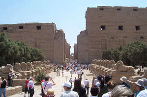 Аллея Сфинксов С Аллеи Сфинксов начинается знакомство с Карнакским Храмом. Эта аллея предваряет вход в Большой Храм Амона-Ра, поэтому сразу привлекает внимание сотен и тысяч туристов, которые одновременно оказываются перед входом, что, конечно, портит общее впечатление, но, абстрагируясь от этих толп, стараюсь сосредоточиться на сфинксах.