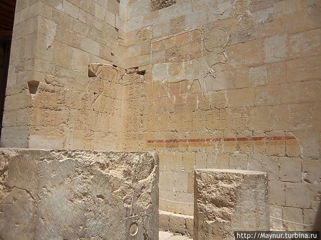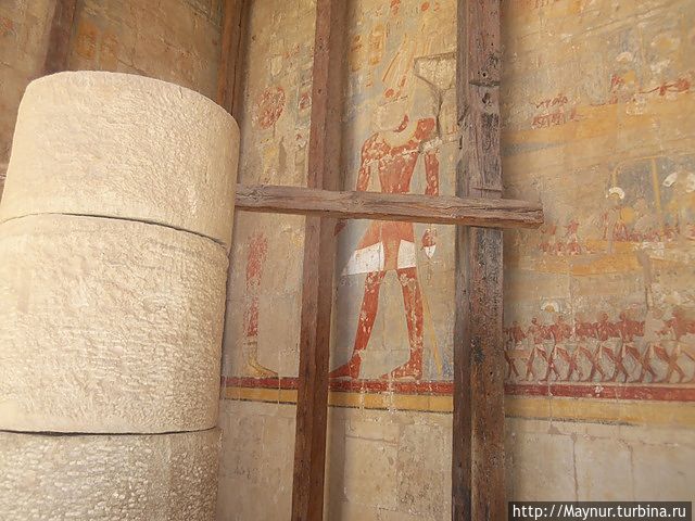 Весь комплекс состоит из трех террас. Террасы храма в центре разделены пандусами, ведущими наверх, к святилищу храма.Все стены первой террасы в изображениях из жизни Хатшепсут.