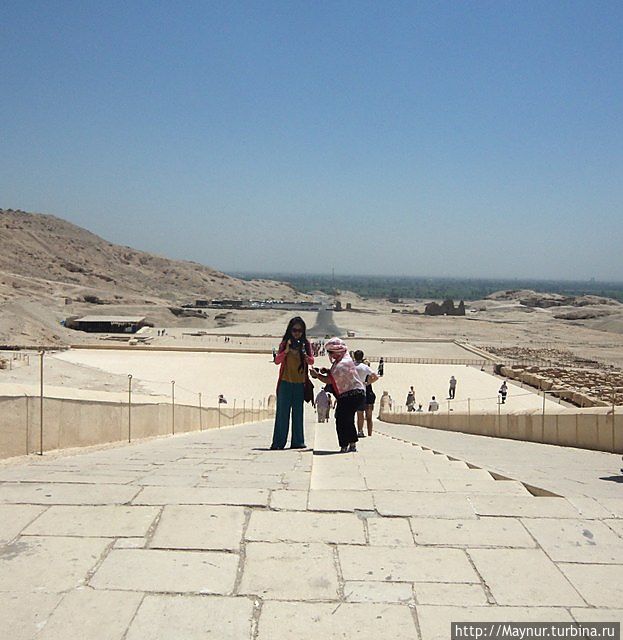 Это первое, что пришло на ум ,при виде огромного пространства перед храмом Хатшепсут. Только позже я узнала, что оно было заполнено бассейнами, прекрасным садом и скульптурами.