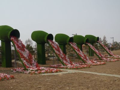 Парк аттракционов возле Стеклянного моста занимает очень большую площадь, которая засажена многочисленными цветами, кустарниками и деревьями. Ранней весной, конечно, было не так красиво, как летом.
