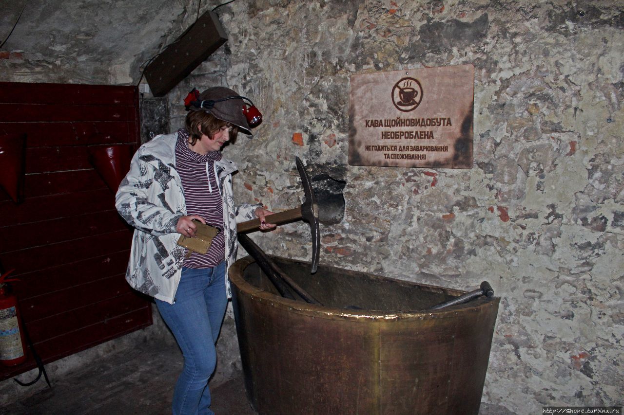 Но креатив места заключается как раз в том, чтобы изобразить, что кофейные зерна не прибывают во Львов из Бразилии, а добываются прямо в шахте под площадью Рынок.