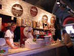 Главным аттракционом пекарни является открытая кухня расположенная у больших окон выходящих на рыночную площадь.