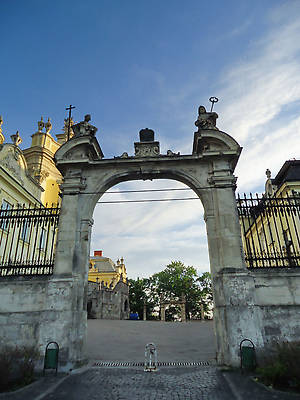 Совершая утреннюю прогулку по Львову, любуясь безмолвными ликами улиц старинного города, мы издали увидели купол с крестом и поняли, что нам именно туда и надо. Ну не в смысле конечно, что мы с супругой большие грешники и нам пора исповедываться, а в смысле, что можно ещё посмотреть один замечательный храм. И надо сказать нам очень повезло.
