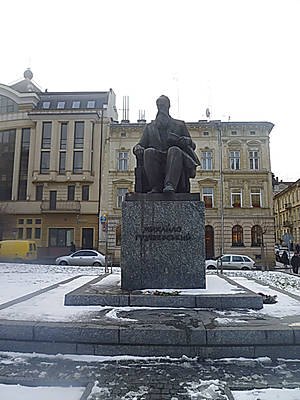 Есть памятник и первому Президенту Украины Михаилу Грушевскому. В 1918 году он был провозглашен президентом Украинской Народной Республики.