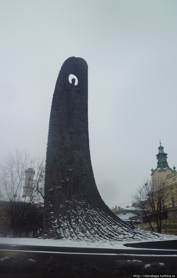Во Львове очень много памятников. Гуляя по городу, знакомишься с не очень известными у нас историческими личностями, радуешься встрече со знакомыми именами, любуешься настоящими произведениями искусства, а иногда и недоуменно пожимаешь плечами. Да, памятника Ленину во Львове нет. Был, конечно, но демонтирован в 1990 году. Но зато есть памятник Степану Бандере, о чем, наверное, многие наслышаны. Мы мимо него только проезжали, поэтому детально не разглядывали. Зато арка рядом с памятником впечатляет размерами.