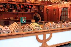 Рождественская ярмарка оказалась очень большой, яркой и красивой. При этом она очень гармонично вписалась в исторический центр города, дополняя его и оттеняя. Киоски и лотки ненавязчиво жмутся к сокровищам архитектуры, в то же время оставляя свободными подходы к ним.