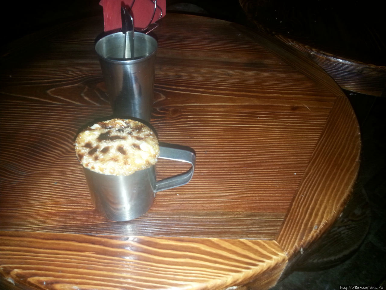 Глубже в печи томятся антрекоты, чуть-чуть вкуснее я ел только в Болонье. Облизнулись? Ну идем внутрь, зал выглядит в форме пыточной, с громоздкими столами и стульями в виде плах или гильотин. Меню также разнообразно и по алкоголю и по пиву, с хорошим выбором супов. Отдельно заикнусь про туалет, но только заикнусь, все узнаете сами. За отдельную плату палачу, опять-таки добровольно, вас посадят в долговую яму или наденут «Испанский сапог», или оттяпают голову на гильотине, это кому что нравится.