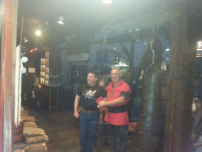 А вечером мы заглянем, и неоднократно, в ресторан «Мяса и справедливости», где на входе вас приветствует кат (палач) Андрей, сидящий на против огромной жаровни, или кат Виталий.