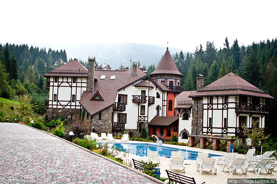 Все в том же урочище Цоцора находится просто удивительный отельный комплекс Вежа Ведмежа. Первая его удивительность заключается в том, что в том районе застроен практически каждый клочочек земли, а отель находится в небольшой впадинке полностью окруженный лесом. И, выйдя на крыльцо, складывается впечатление, что ты находишься в каком-то отдаленном от людей и построек заповеднике....