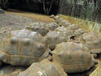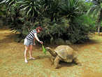 На входе в вольер черепах служащий парка объясняет, что черепаху можно гладить по голове и за шею, лишь бы пальцы не попали ей в рот. А еще можно и присесть сверху, но если она лежит. Понятно, панцирь-то ее выдержит вес любого человека, а вот катать она точно никого не будет...