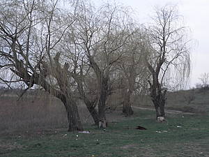 Объезжаем речку Тузлов по плотине, оставляем машину под плакучей ивой.