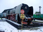 Около жд вокзала, всякие разные поезда локомотивы, совсем древние