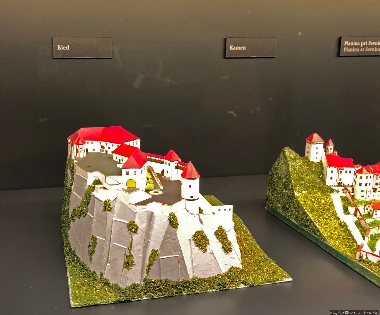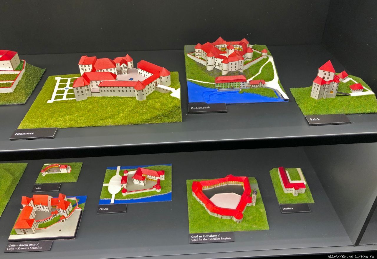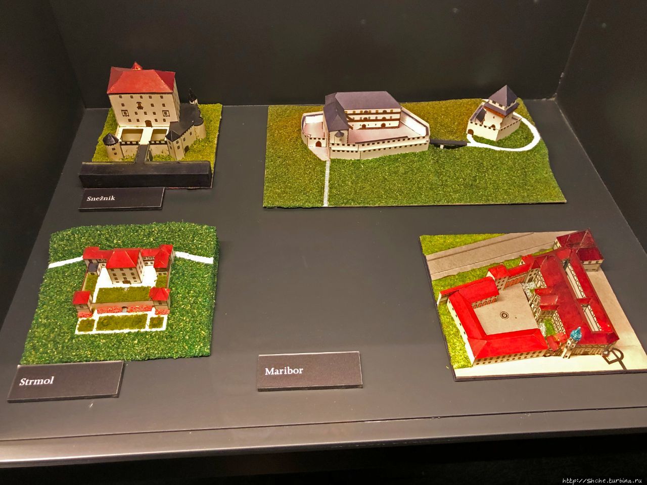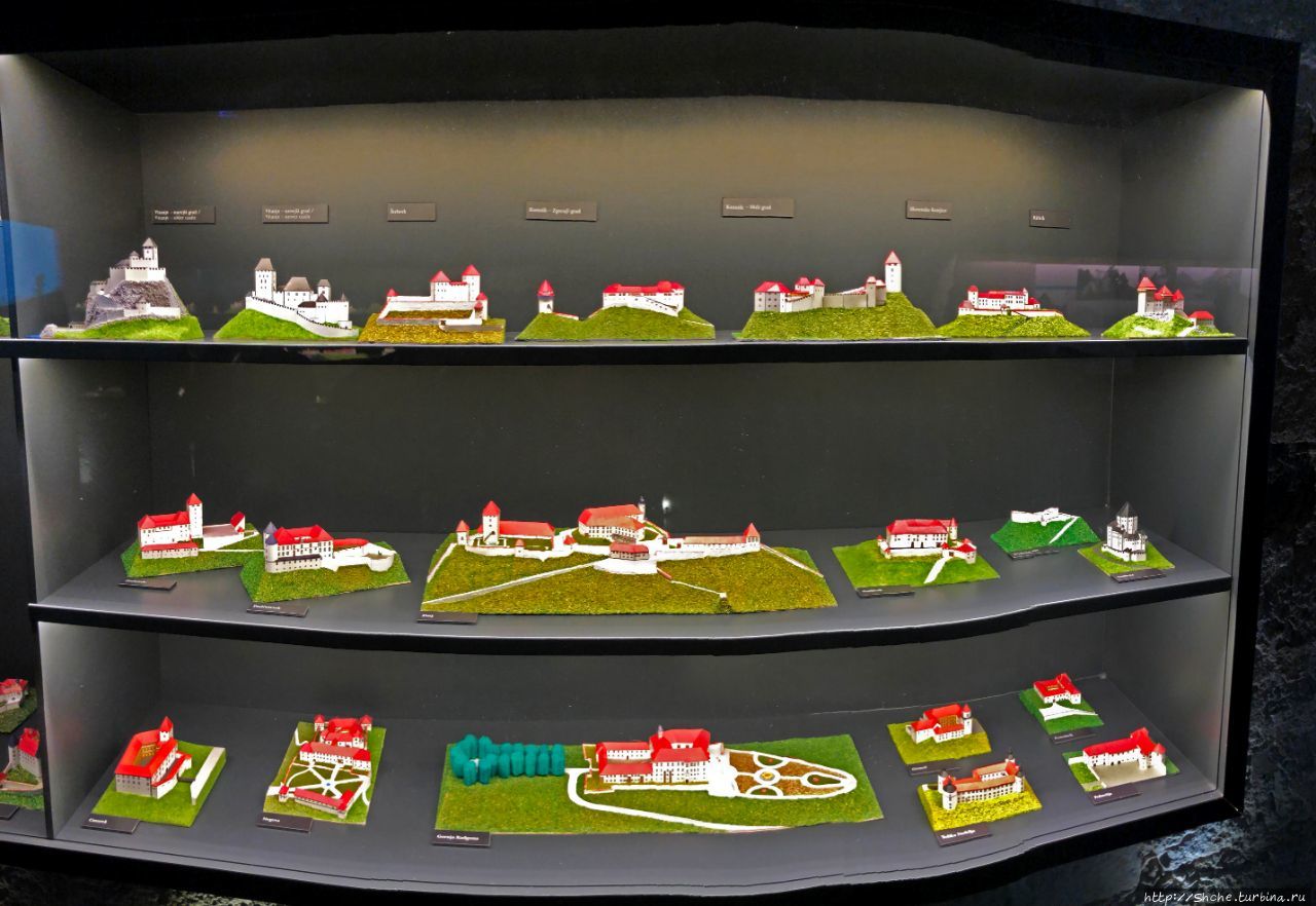 Здесь в специальных витражах выставлены макеты всех замков Словении.