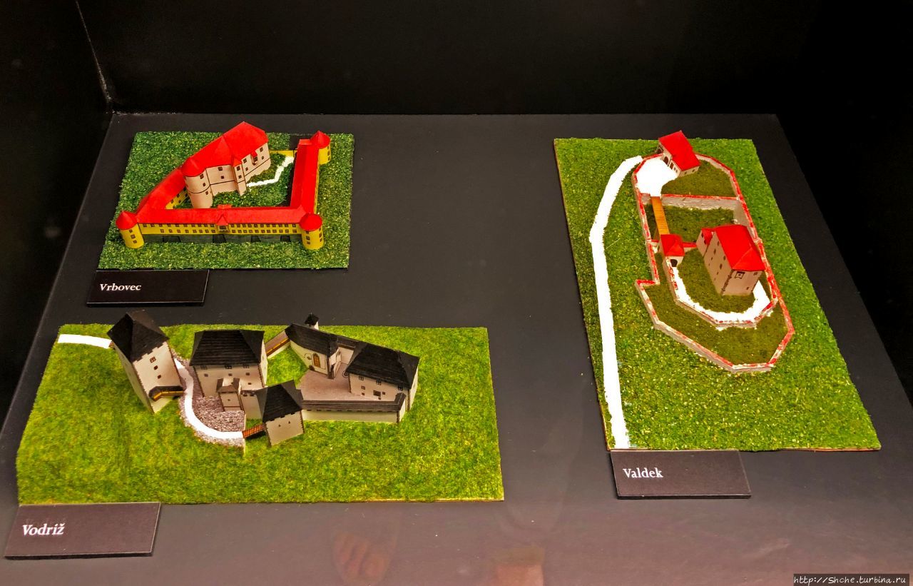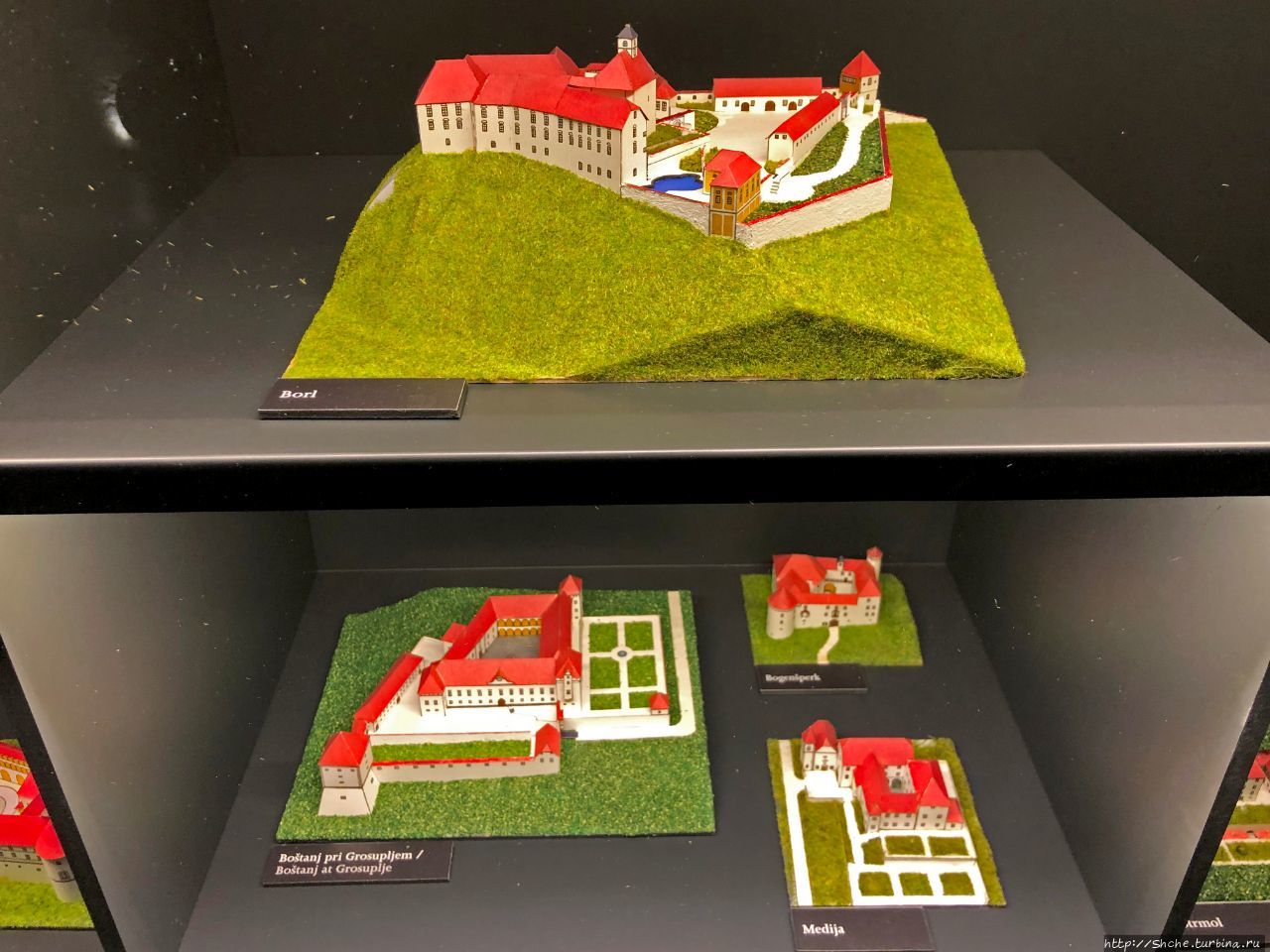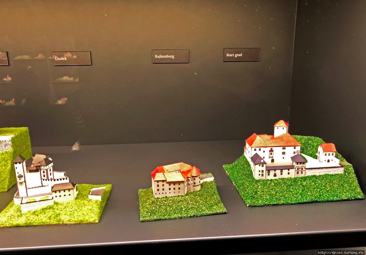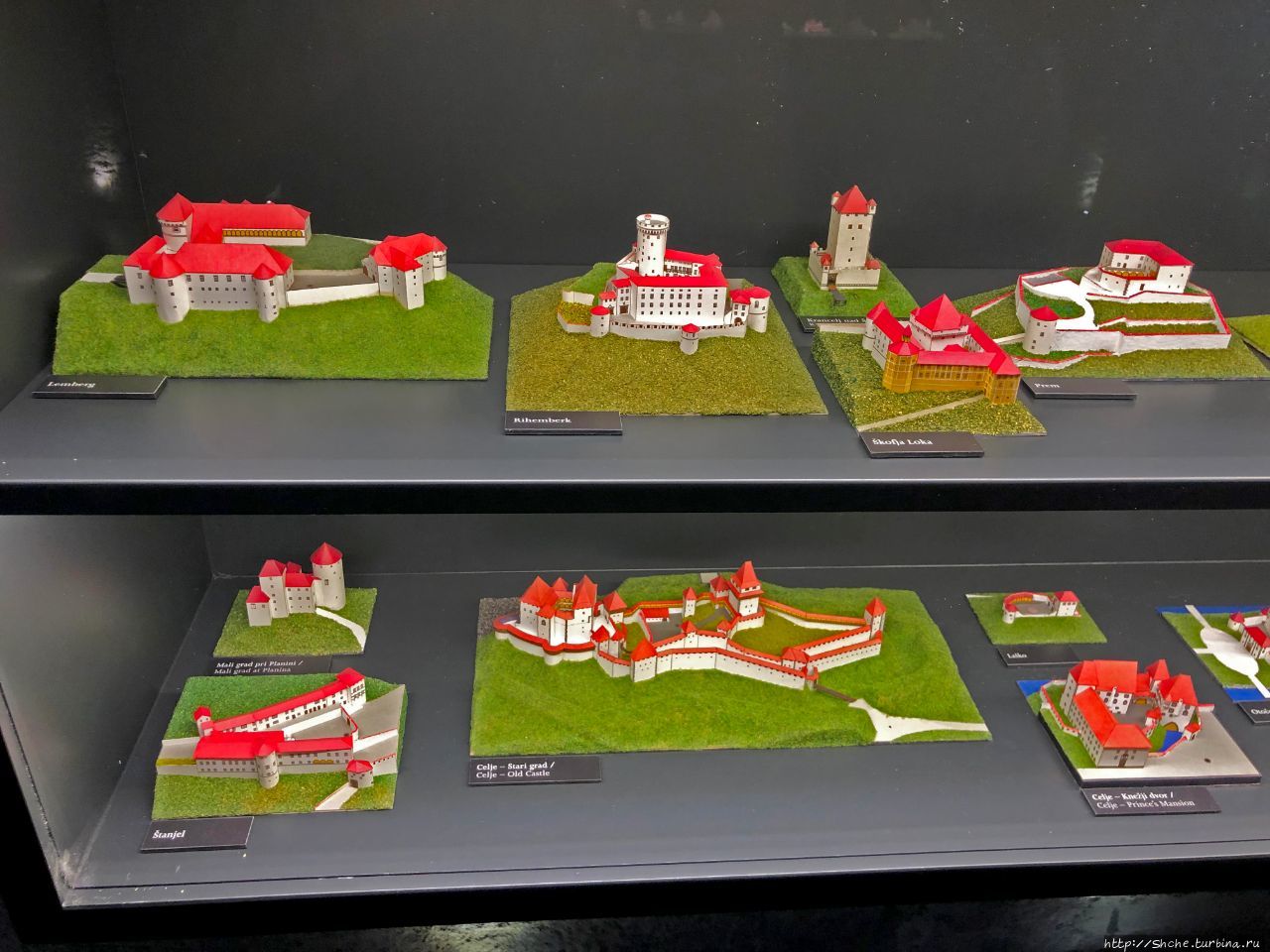Здесь в специальных витражах выставлены макеты всех замков Словении.