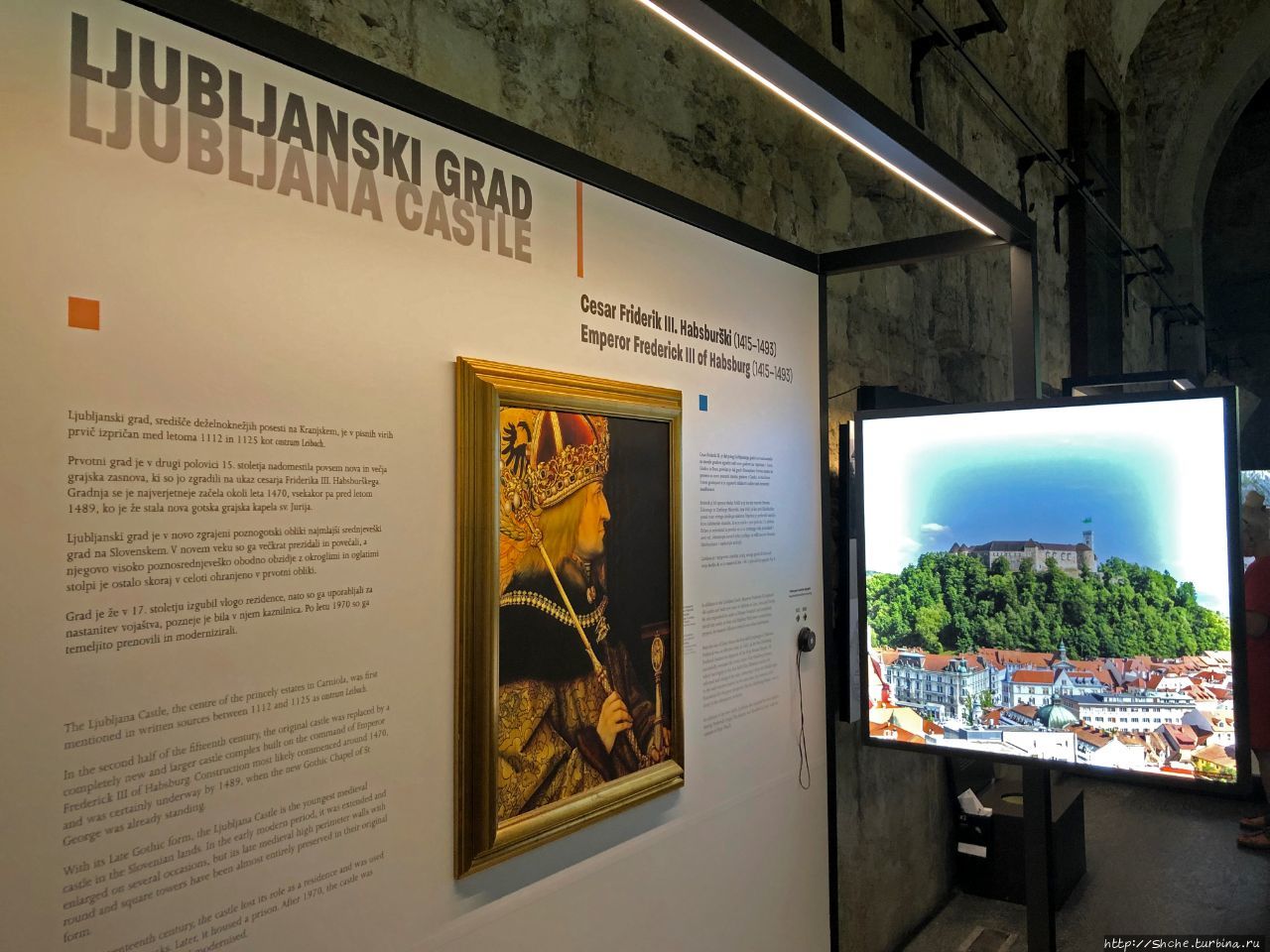 Она посвящена замкам Словении. Открывает выставку щит собственно Люблянского замка...