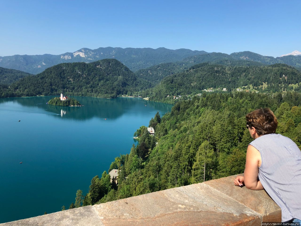 Например, в то утро мы поселили Бледский замок... Забрались на вершину холма над озером прямо на машине, рассматривали замечательные панорамы живописного озера...