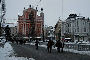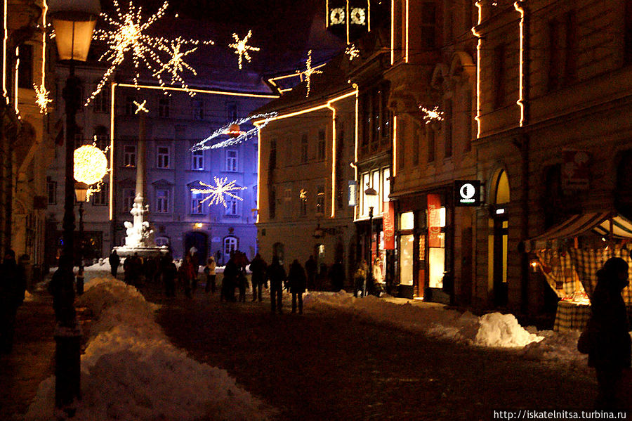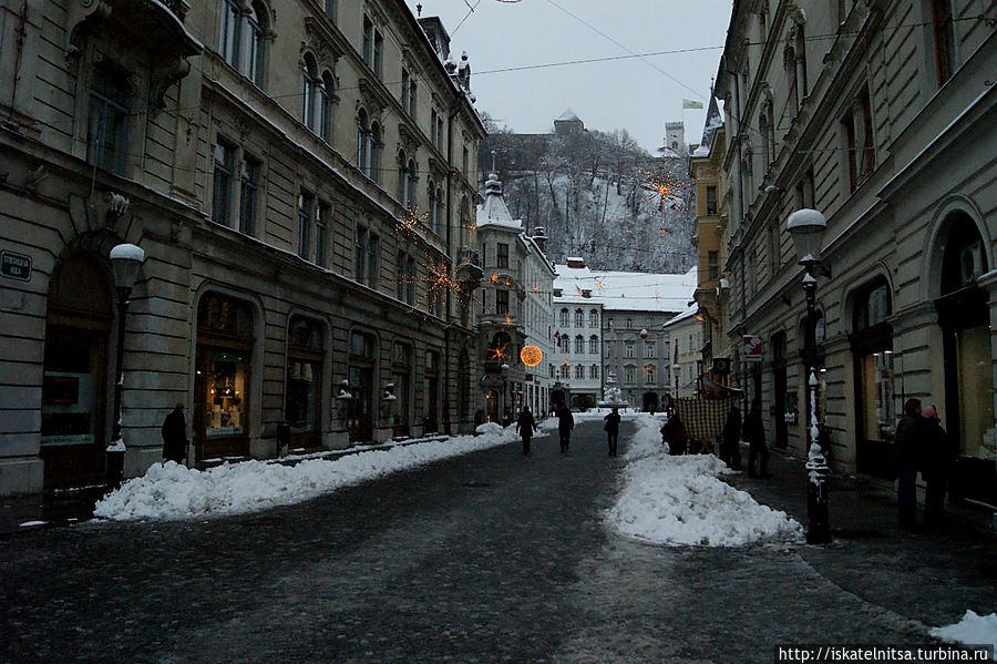 Погода, конечно, не особенно радовала нас. Снегопады обеспечили ограничения до 80 км/ч, а посему обычный путь до словенской границы оказался непривычно длинным. Впрочем, они закончились, как только мы въехали на территорию уже упомянутого государства. Так же, как и расчищенная дорога. Что я могу сказать, езда по ухабам не раз заставила меня вспомнить родные края. Но надо отдать должное: по мере приближения к столице снега на дороге становилось меньше и меньше, что, конечено, несколько придавало оптимизма.