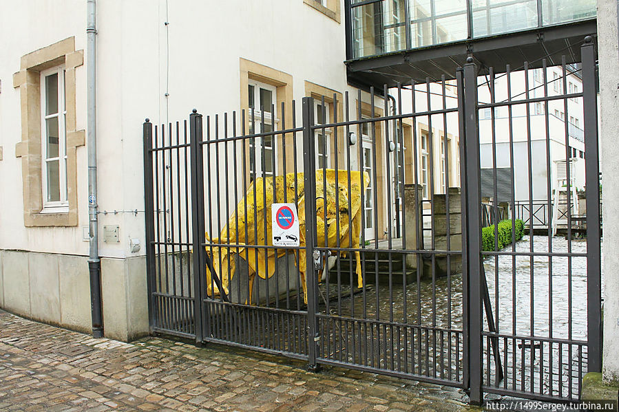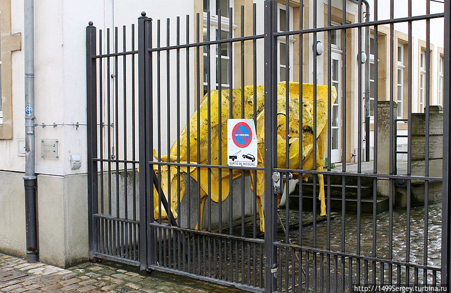 Взять к примеру вот эту корову, что так скромно устроилась за решёткой во дворе одного дома. Думается нам, что неспроста бурёнка золотая. Ведь как-никак, а родом из Люксембурга она.