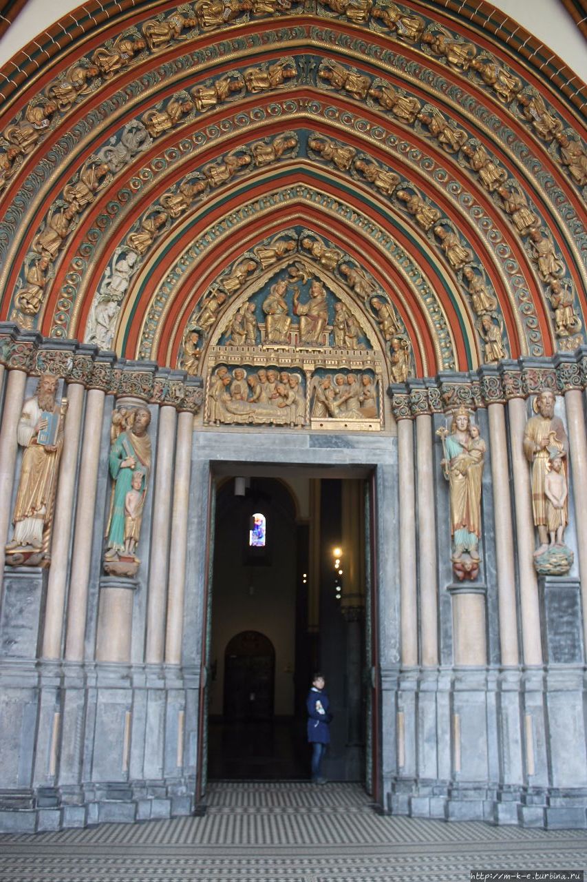 Почему ворота Адовы? Выглядят вроде вполне дружелюбно. Мощное сооружение, которое осталось еще со времен 1229 года, когда Герцог Генри 1 решил соорудить крепостную стену. Название пошло от того, что в здании ворот хранились запасы пороха. Если бы он рванул, это был бы тот еще ад. Внутри можно увидеть экспозицию ядер, которыми пытались пробить ворота. На одной из стен ключи от ворот. В продолжении ворот остатки крепостной стены вдоль которой мы и пройдем к нашему последнему пункту экскурсии — площади Врийтхоф (Vrijthof). Это старейшая площадь города. На ней можно увидеть две церкви. Одна кричаще красного цвета — Церковь Святого Иоанна Крестителя. Данное здание построено в 14 веке. Самое запоминающееся в этом здании это его колокольня высотой 70 метров с острым шпилем. Башня трехуровневая. Самое интересное находится наверху. Когда здесь находился колокол весом более 1200 кг. Во время войны колокол был украден и на этом месте появились часы. В интерьере стоит обратить внимание на деревянную кафедру 1780 года, медный аналой с изображением льва – символом Республики Соединенных Провинций и коллекцию картин 15 века. Самое старое захоронение в церкви относится к 1354 году.