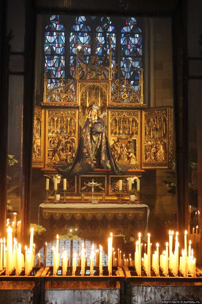 Вдоль на набережной пройдем до улицы Onze Lieve Vrouweplein. На этой улице есть желание увидеть Базилику Девы Марии (Basiliek van Onze Lieve Vrouwe) — один из старейших храмов Нидерландов. Построен он около 1000 года. Со стороны главного входа эта церковь больше напоминает замок с большой высокой стеной и двумя башнями. Внутри из достопримечательностей капелла "Дева Мария -Звезда моря". Эта Богоматерь покровительствует странникам, путешественникам,то есть нам с Вами. Красив и прекрасно оформлен орган 17 века с витражами о Деве Марии.