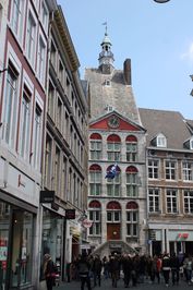 Теперь можно пройти и на рыночную площадь. Она и сейчас оправдывает свое название, так как два дня в неделю здесь работает с рынок. Первое, что мы увидели на площади был памятник Яну Питеру Минкелерсу. Этот человек знаменит тем, что он первый нашел способ получения коксового газа, который легче воздуха. На основании его открытия в городе был построен первый газопровод для уличного освещения. Здесь же на площади стоит еще одно здание, которое должно быть удостоено внимание. Это Городская Ратуша, построенная в период с между 1659 и 1664 годами на Рыночной площади. Ее фасад украшают 49 колон, а на фронтоне скульптурная композиция мать и ее сыновья воины.