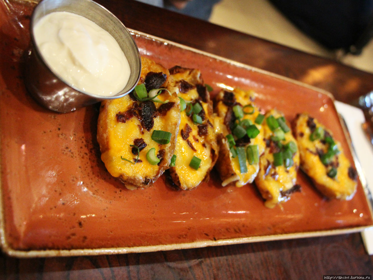 Ну а собственно по еде... Здесь мы ушли от традиции брать ребра. Просто прилетели голодные и поели около 3-х часов. Потому были не голодны, но уважить заведение хотели. Потому сын выбрал в стартерах запеченную с сыром картошку...