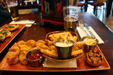 А я тарелочку креветок... И здесь меня это кафе вновь смогло удивить так, что я смогу где-то произнести "а вот в мадридском хард-роке...". К креветкам мне подали запеченный лимон! И это оказалось очень вкусно. Сока в нем полно, но он мягкий-мягкий...