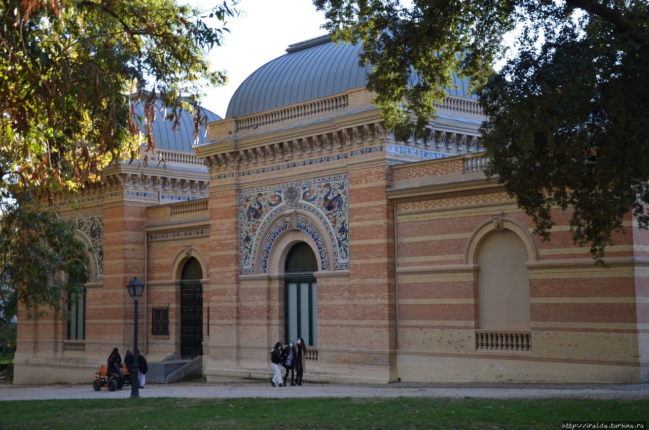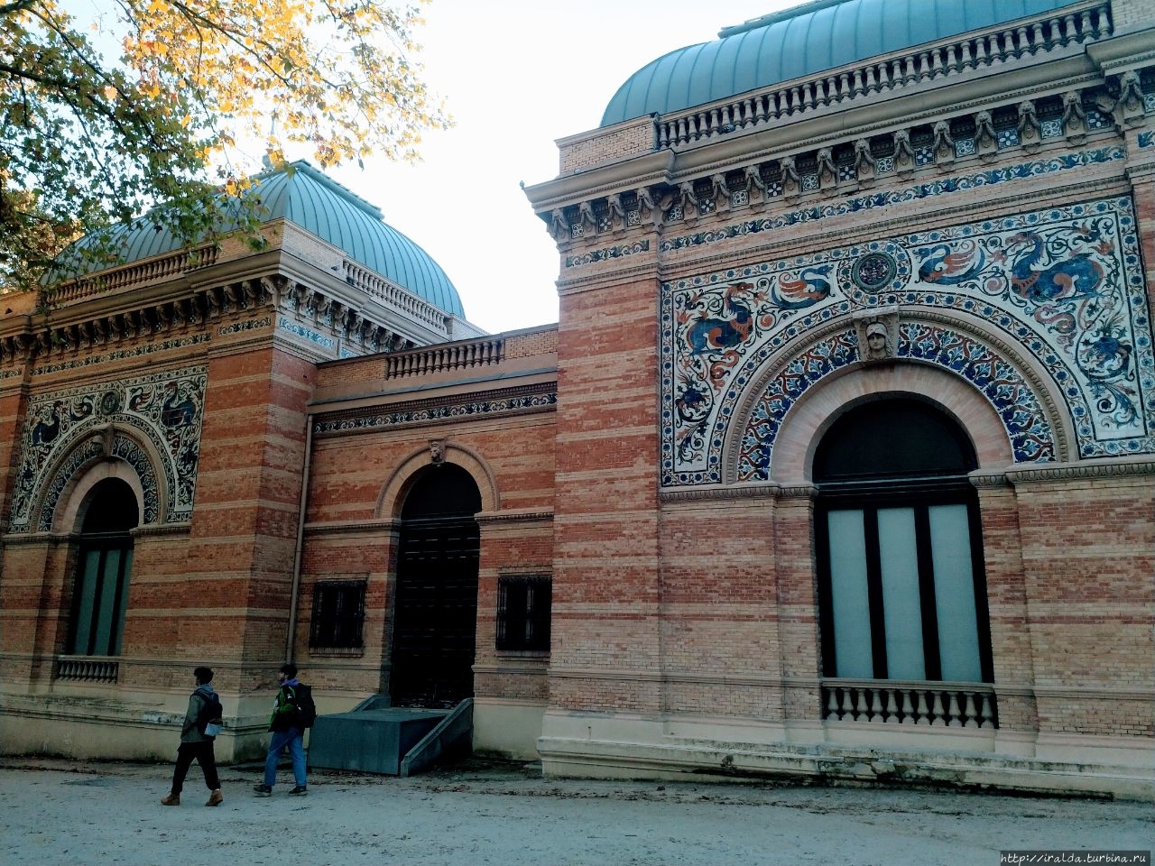 В парке находятся два очень примечательных сооружения, созданные в конце XIX века одним архитектором — Рикардо Веласкесом Боско. К одному из них мы и подходим. Он так и называется — Дворец Веласкес, по имени его создателя.