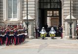 Подкатили военные на мотоциклах. Это, надо понимать, эскорт. Вместо придворных.