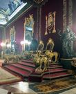 Тронный зал и Зал Гаспарини, выдержанные в стиле рококо, с обитыми дорогой тканью стенами...