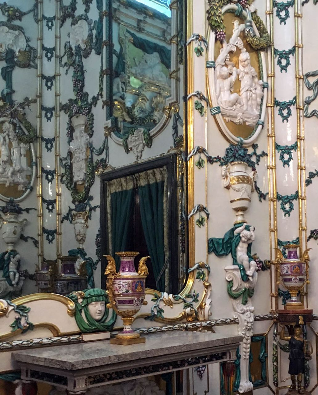 Великолепные панели Фарфорового зала, фламандские гобелены и хрустальные люстры в Парадном обеденном зале...